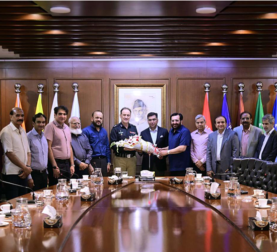 A KATI delegation held a meeting with Mr. Azad Khan (Additional IGP Sindh), which was attended by Mr. Ikram Rajput (President KATI), Mr. Zahid Hameed (Senior Vice President KATI), Mr. Junaid Naqi, Mr. Gohar Ali Qandhari, Mr. Faheem Khan, Mr. Zahid Saeed, Mr. Omer Rehan, Mr. Imtiaz Hussain, Mr. Saleem uz Zaman, and other distinguished members of KATI. During the meeting, various matters related to the law-and-order situation were discussed. In conclusion, the KATI delegation presented a flower bouquet and a rifle frame to the Additional IGP Sindh as a gesture of appreciation. The meeting took place on March 25, 2026, at the KPO Office.