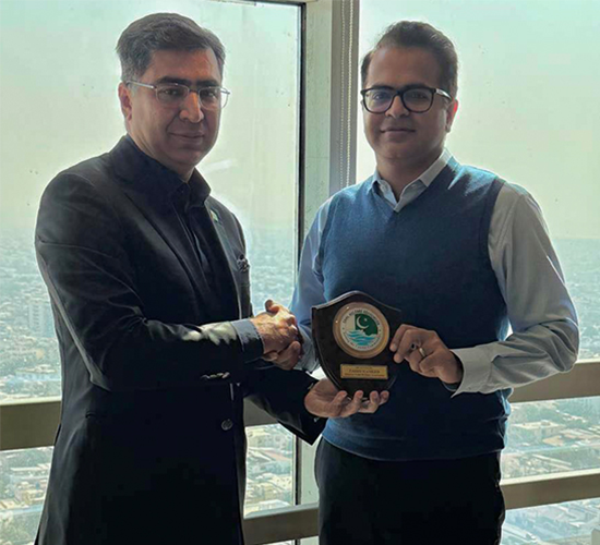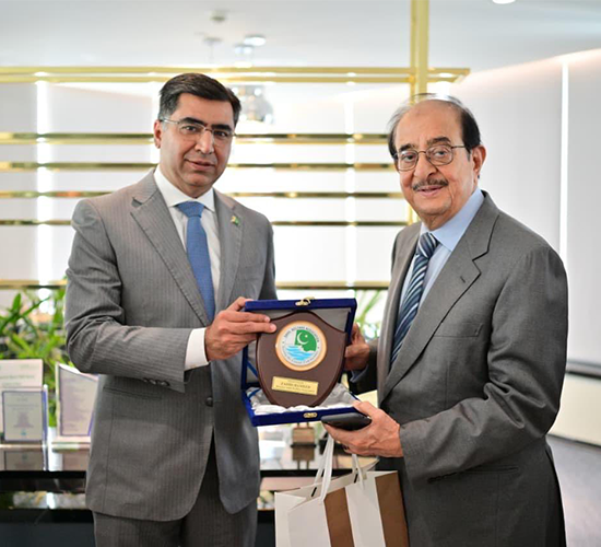 Mr. Zahid Hameed (SVP KATI) met with Asad Soorty (Director, Soorty Enterprises). During the meeting, various matters related to business and exports were discussed. Mr. Zahid Hameed presented a shield to Mr. Asad Soorty as a gesture of appreciation for being one of the largest contributors to EOBI, on behalf of Chaudhry Salik Hussain (Federal Minister for Overseas Pakistanis & Human Resource Development). The meeting took place on March 3, 2026, at Soorty Enterprises