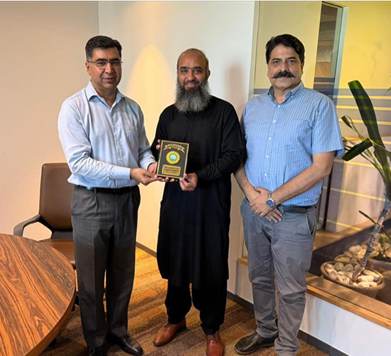 Mr. Zahid Hameed (SVP KATI) meets with Umar Imtiaz (CEO Imtiaz Store) along with Mr. Muhammad Naseem Rana (General Manager Supply Chain). During the meeting, various matters related to business were discussed. Mr. Zahid Hameed presented a Kati shield to Mr. Umar a gesture of appreciation. This meeting took place on March 5, 2026, at Imtiaz Head Office.